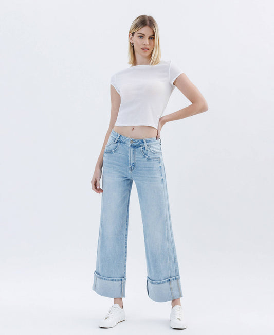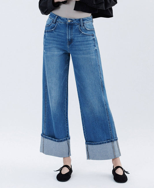 HIGH RISE CUFFED BAGGY WIDE JEANS