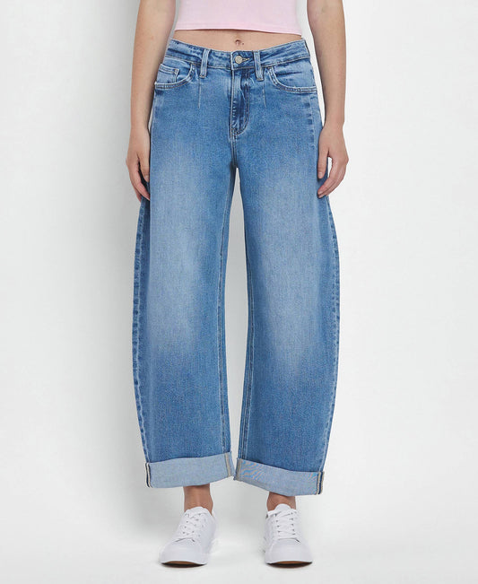 SUPER HIGH RISE DOUBLE CUFFED BARREL JEANS