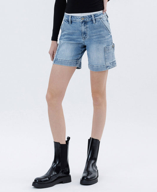 MID RISE POCKET DETAIL WIDE BERMUDA SHORT