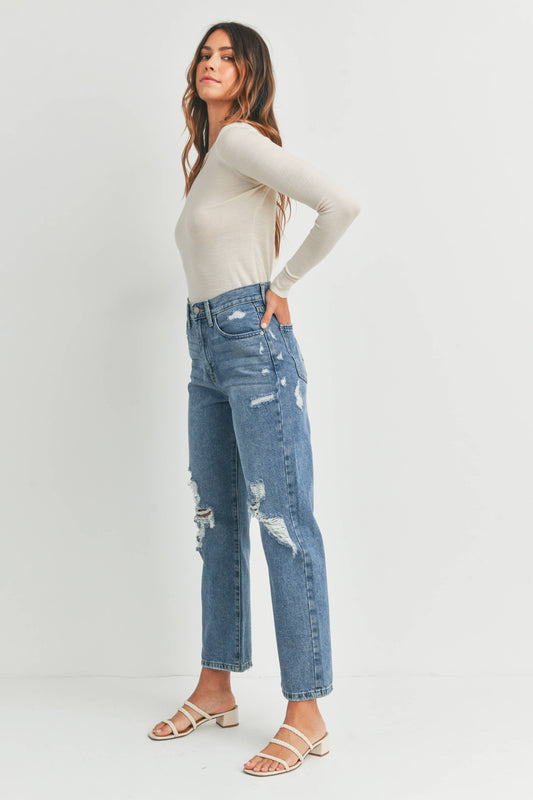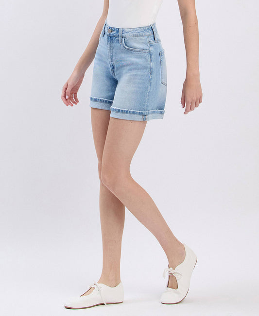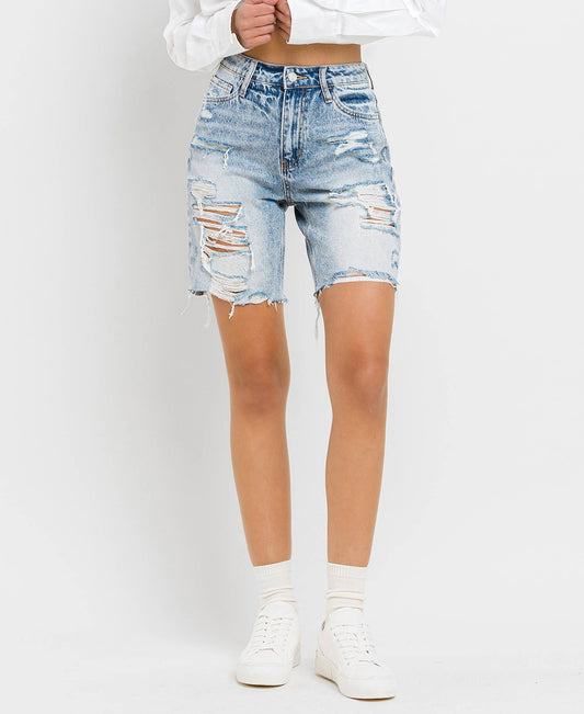 SUPER HIGH RISE MIDI DENIM SHORTS