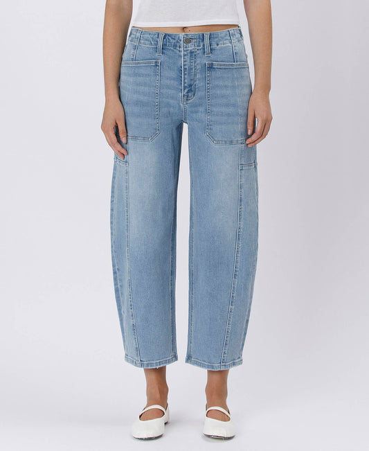 HIGH RISE SEAM DETAIL BARREL LEG JEANS