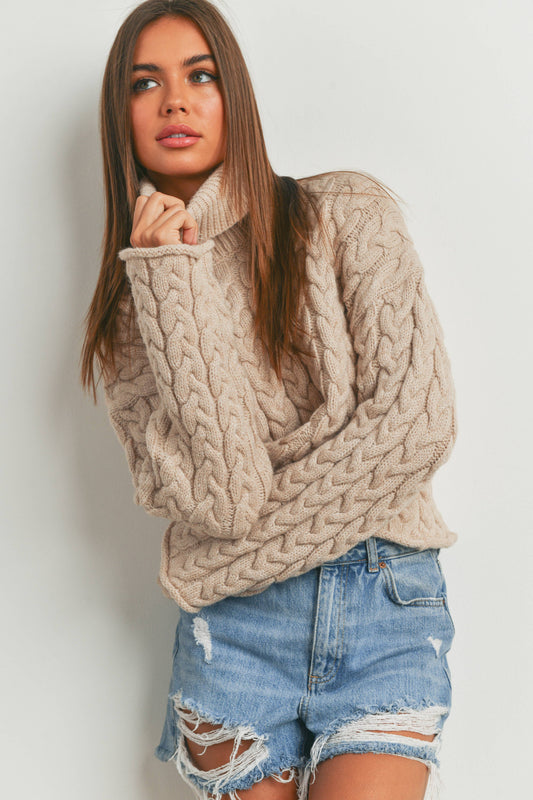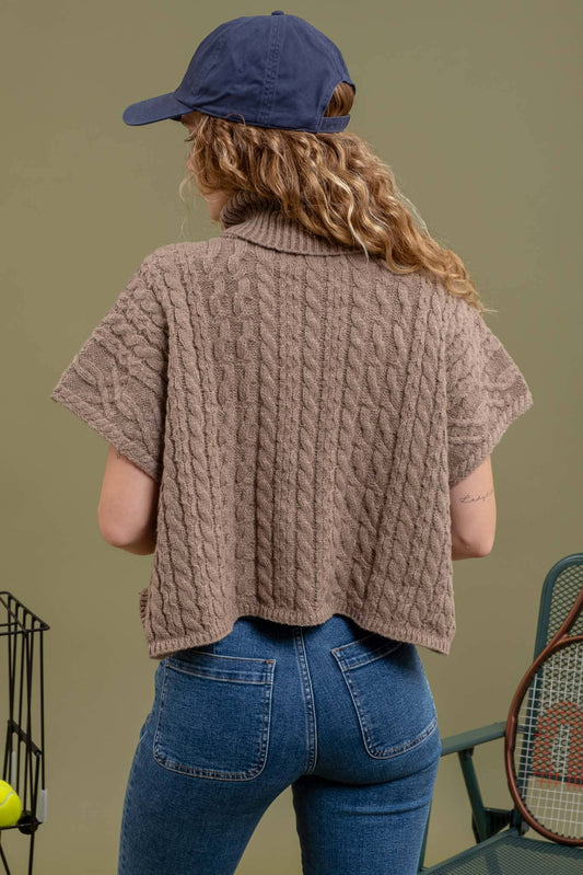 CABLEKNIT SHORT SLEEVE TURTLENECK SWEATER