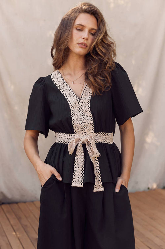 Sold outLACE CONTRAST TEXTURED WOVEN BLOUSE