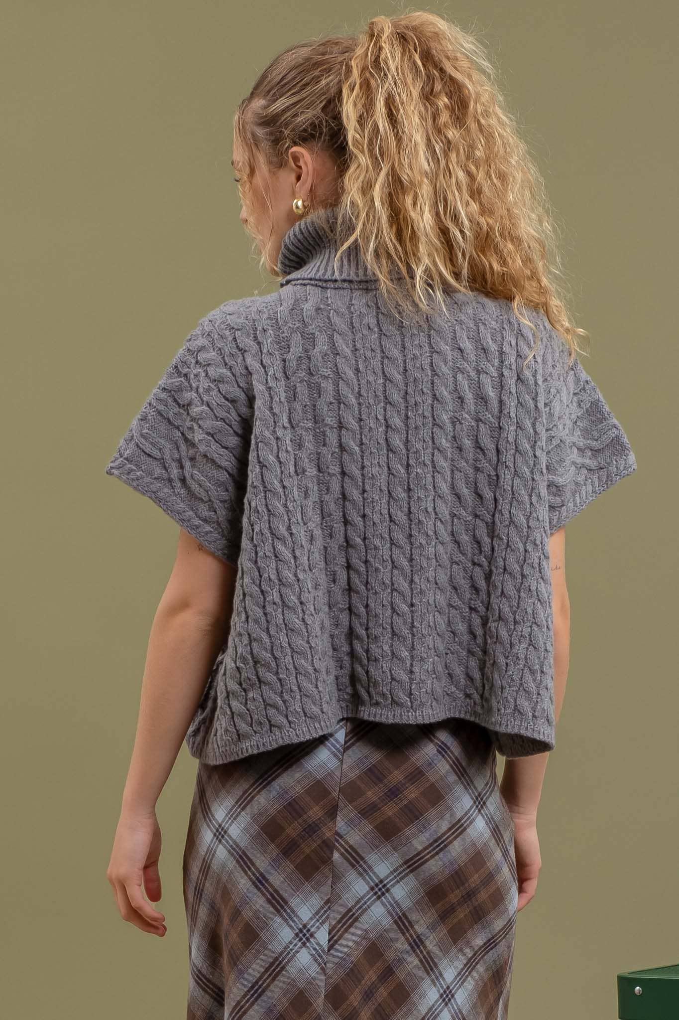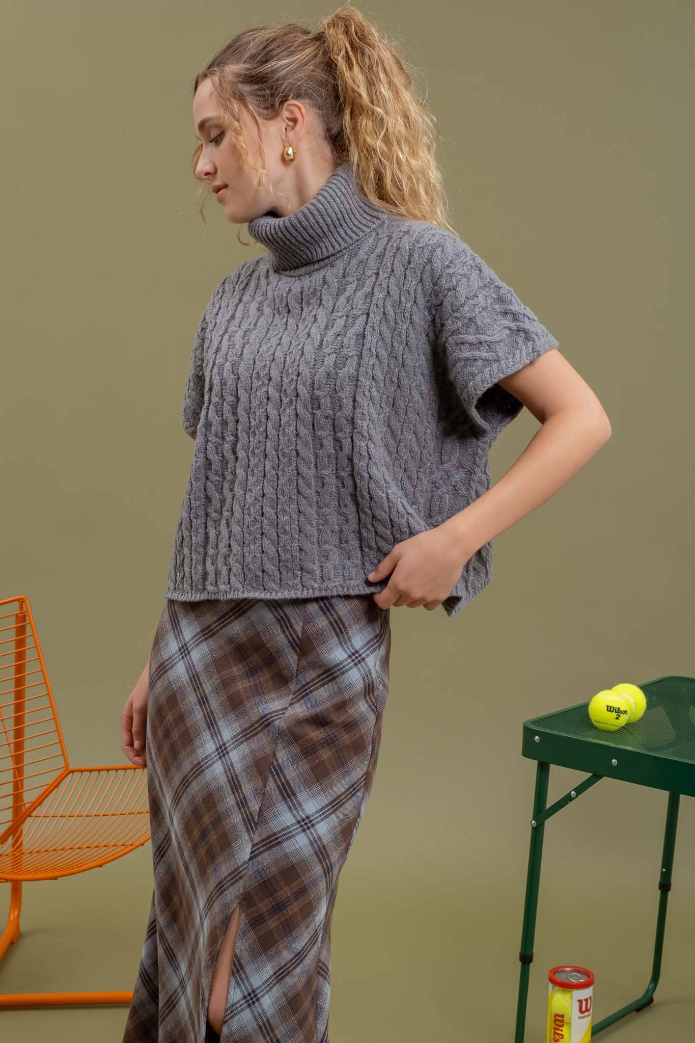 CABLEKNIT SHORT SLEEVE TURTLENECK SWEATER