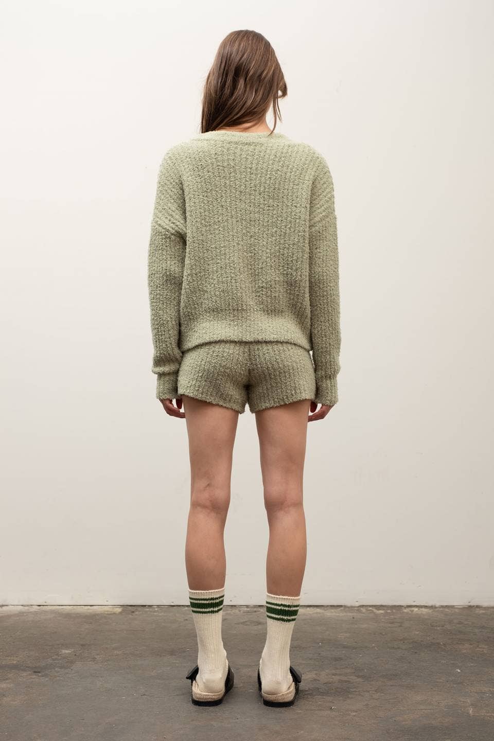 V NECKLINE - LONG SLEEVE - BUTTON UP - FUZZY TEXTURE - 100% POLYESTER