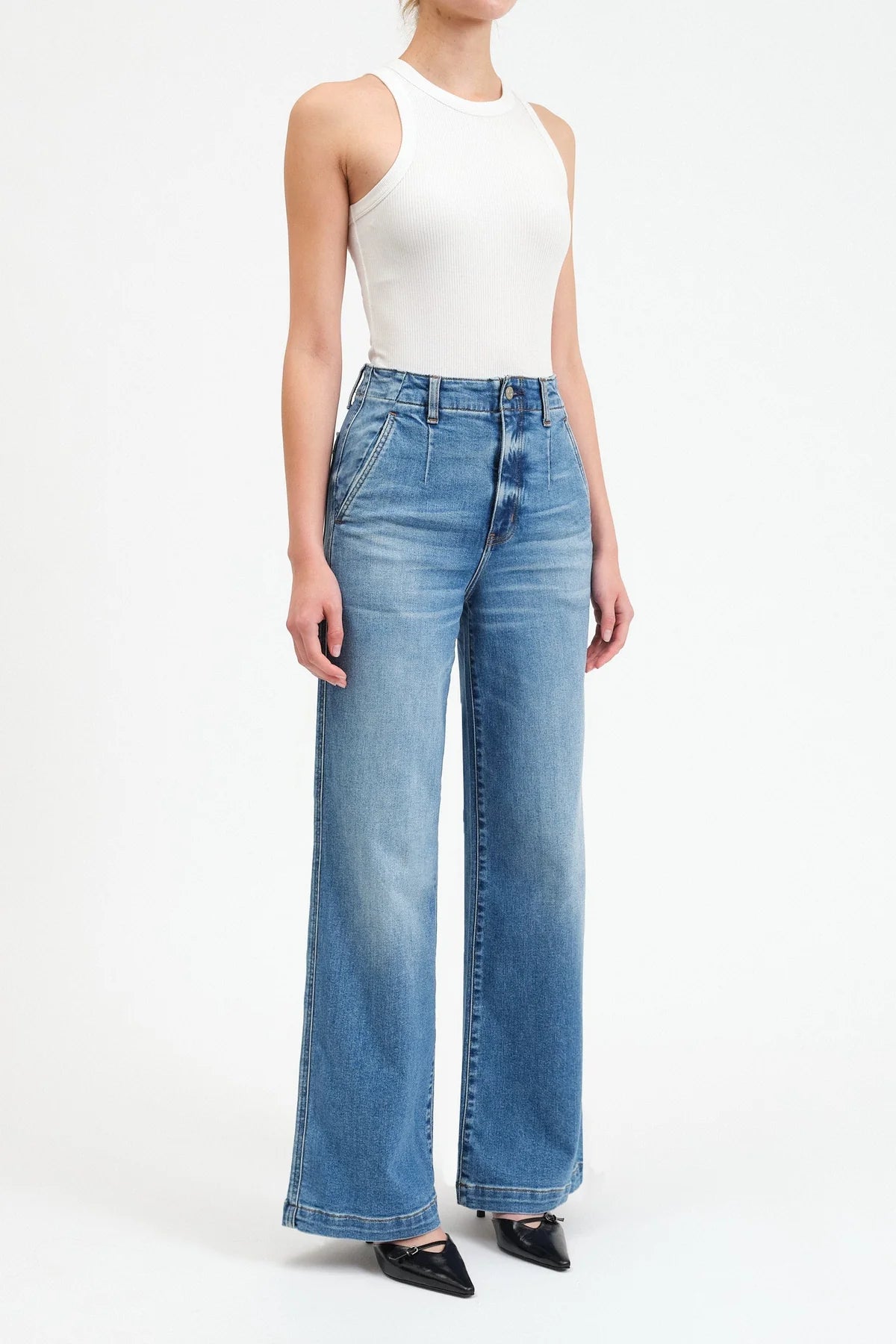 The Far Out in Pure is a high rise wide leg jean that is ultra-flattering and comes in a bright blue light wash. Its clean hems and frontal seaming details create a put-together look. Made from our heavyweight Hug fabric, this jean is both flexible and cinching for a comfortable fit.