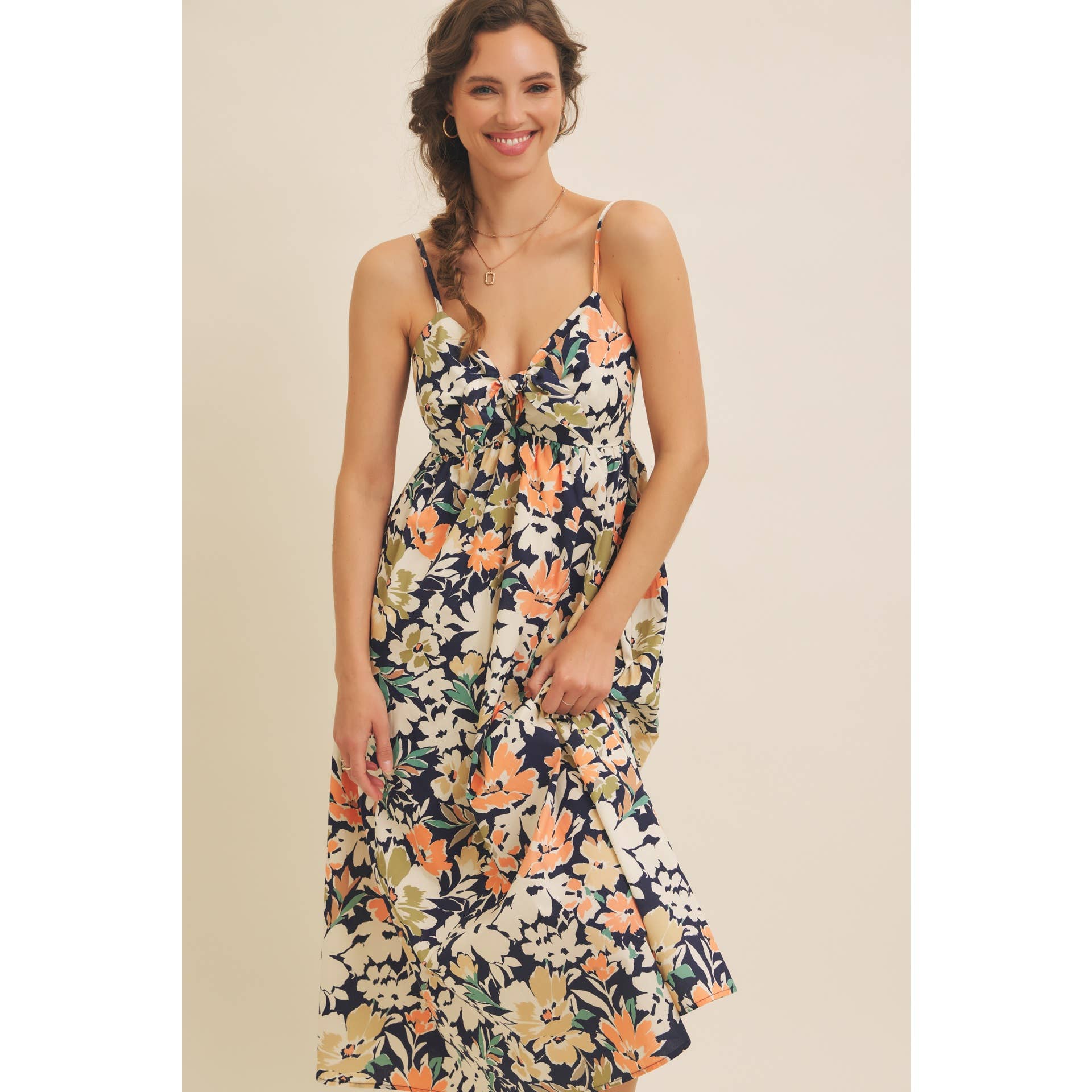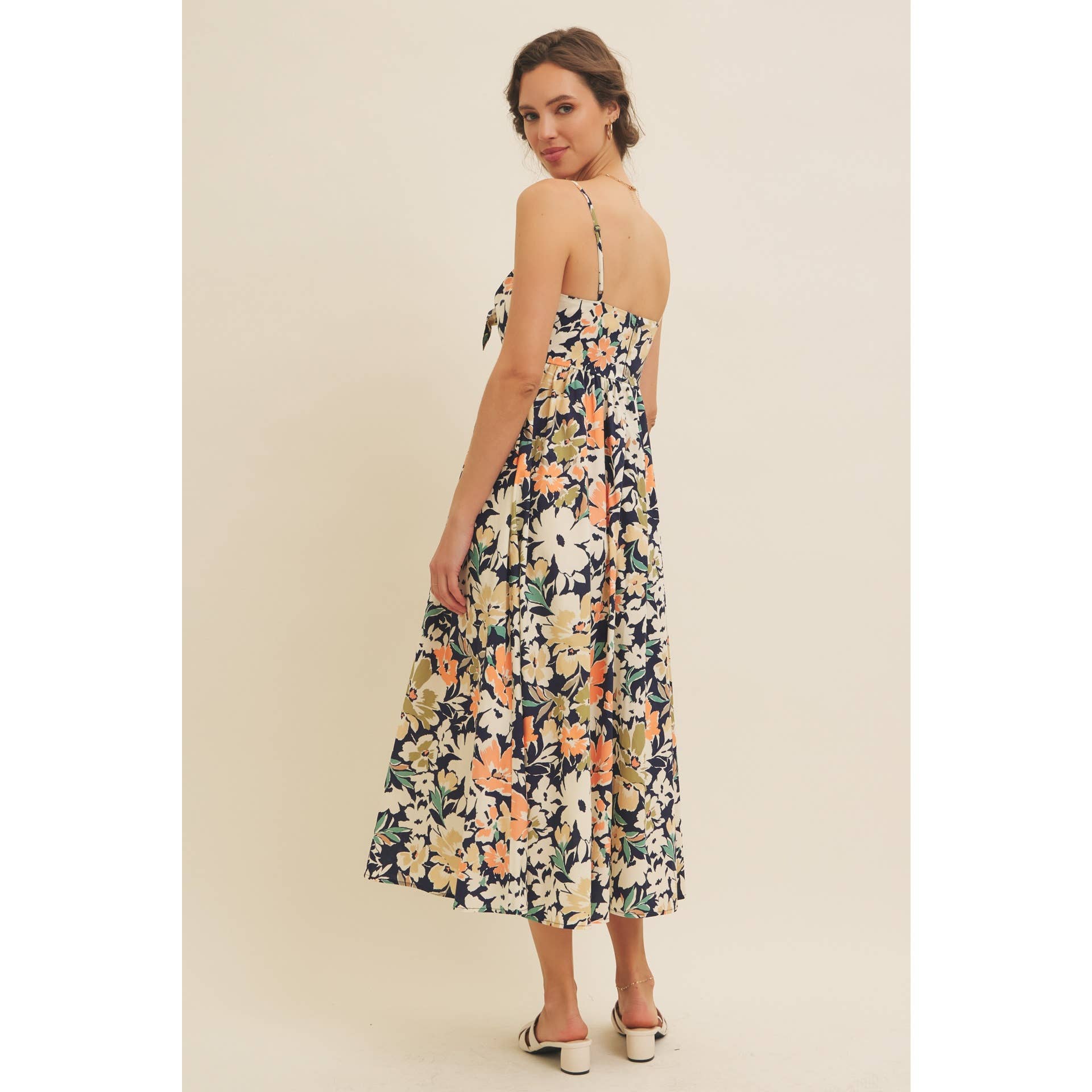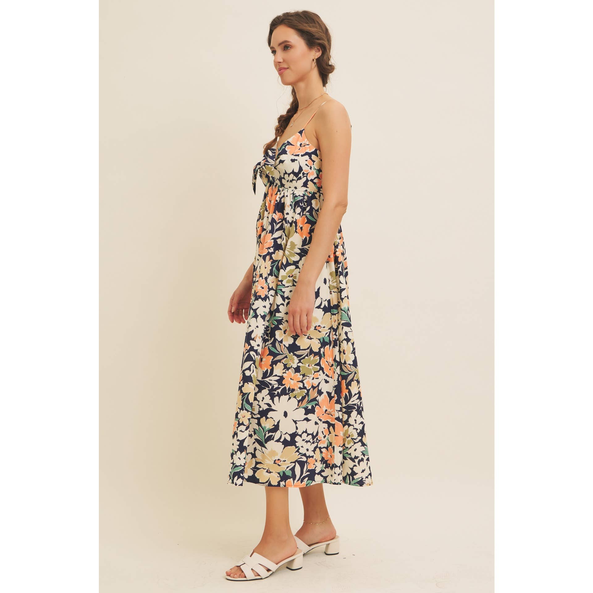FLORAL PRINT FRONT TIE CAMI MIDI DRESS
