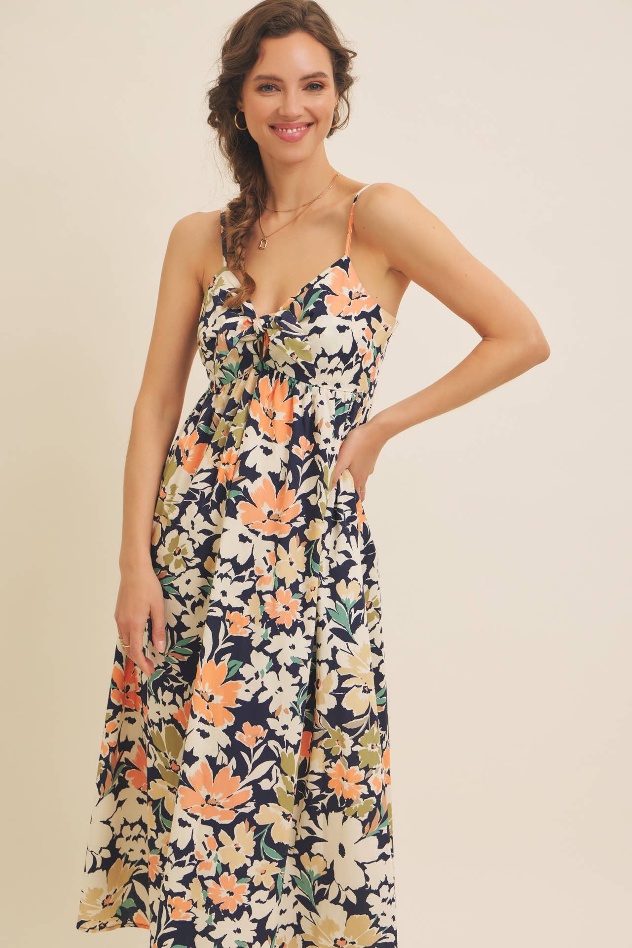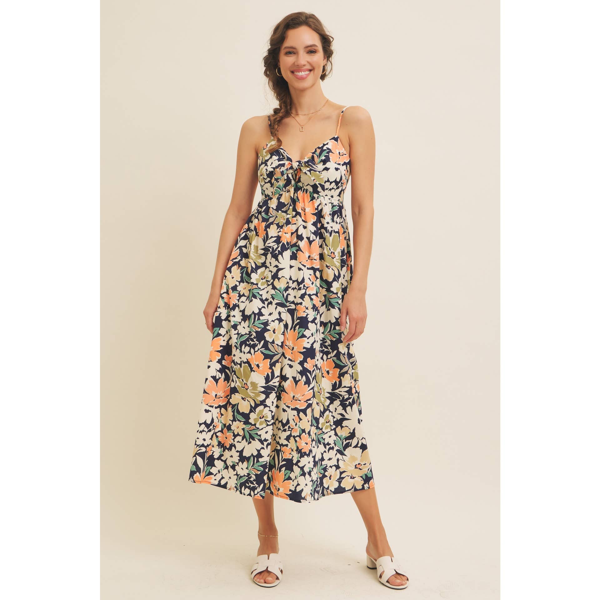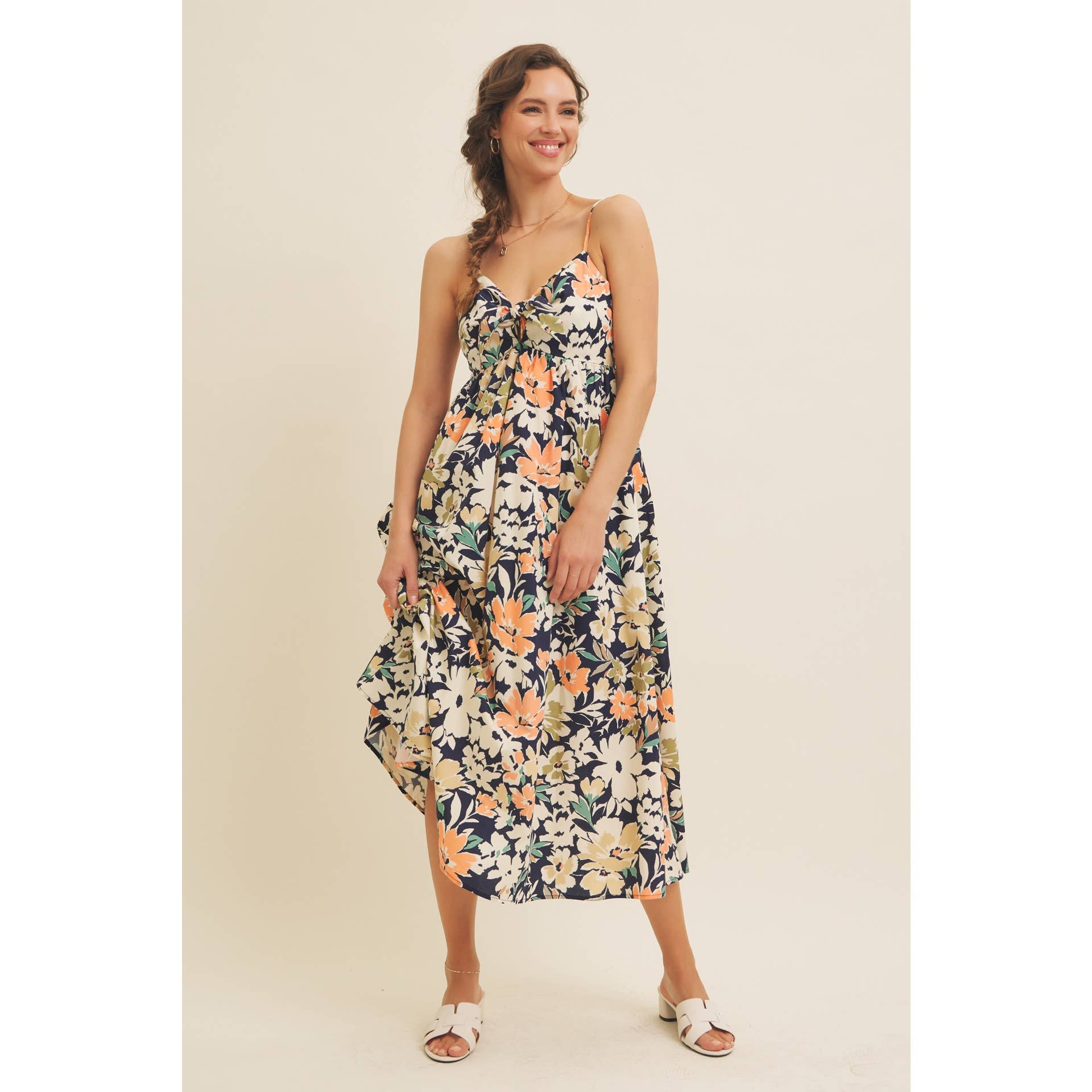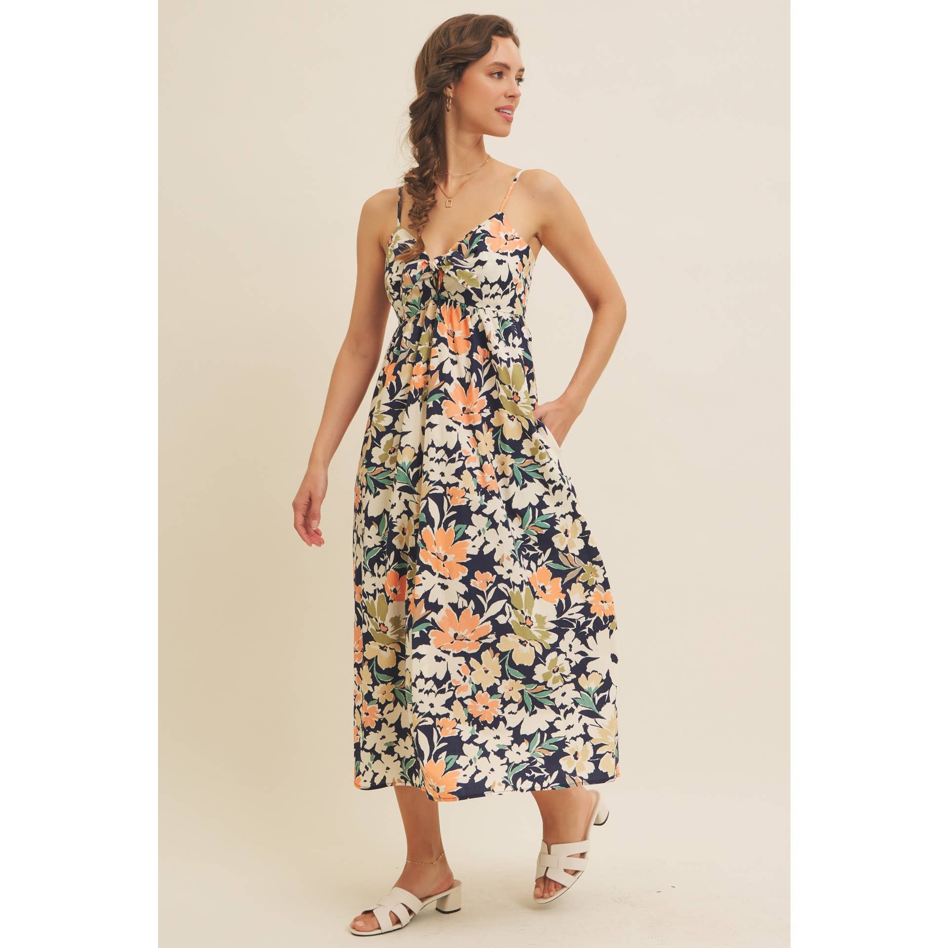 FLORAL PRINT FRONT TIE CAMI MIDI DRESS